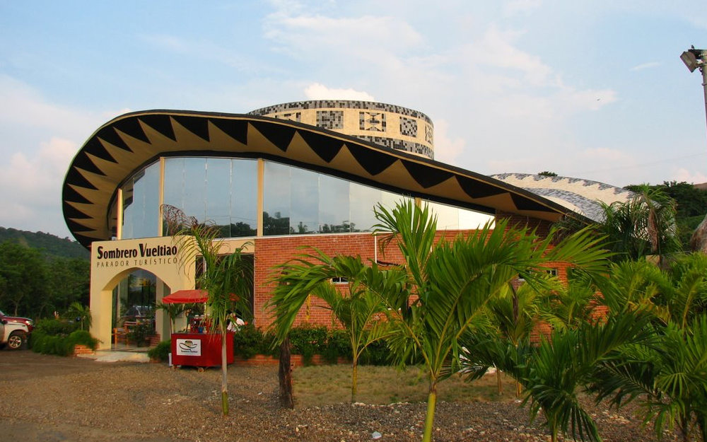 As indicated by its name, the Sombrero Vueltiao restaurant has a huge hat facade, a traditional element of the Colombian Caribbean Region, which the Colombians wear with so much pride during Carnivals and other festivities.